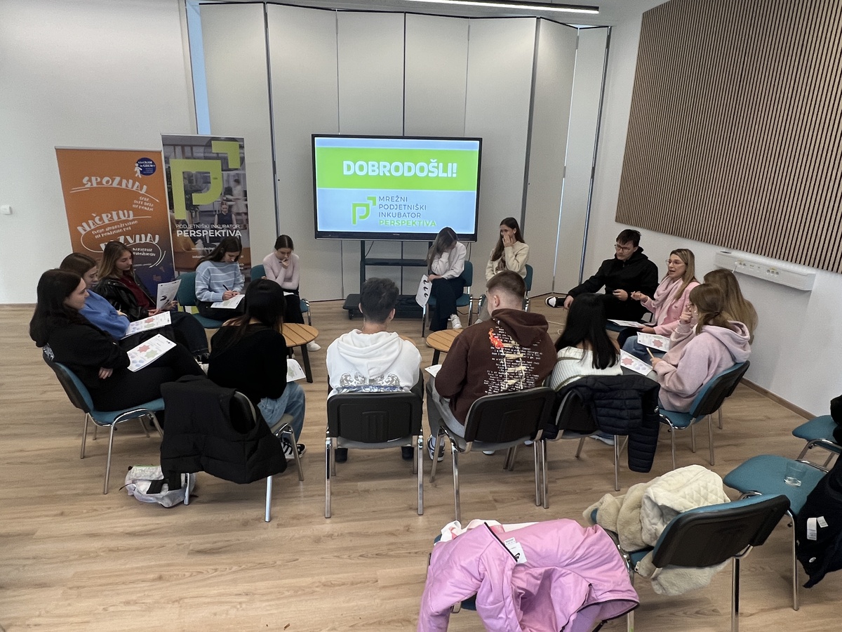 V okviru srečanj smo predstavili tudi delovanje MPIP, mentorjev, prostorov in podpornega okolja za podjetniške pobude ter mikro, mala in srednja podjetja (MSP). Posebej smo izpostavili delo z mladimi in jih spodbudili k razmišljanju o tem, kaj sploh pomeni podjetništvo – kako nastane poslovna ideja, kdo je podjetnik in katere lastnosti, veščine ter vrednote so zanj pomembne. Mladi so skozi razpravo spoznali, da podjetništvo ni le ustanovitev podjetja, temveč način razmišljanja, ustvarjalnosti in iskanja priložnosti. Za zaključek smo predstavili še prihajajoče tekmovanje in festival podjetniških idej, kjer bodo mladi lahko razvijali svoje zamisli in jih predstavili širši javnosti.