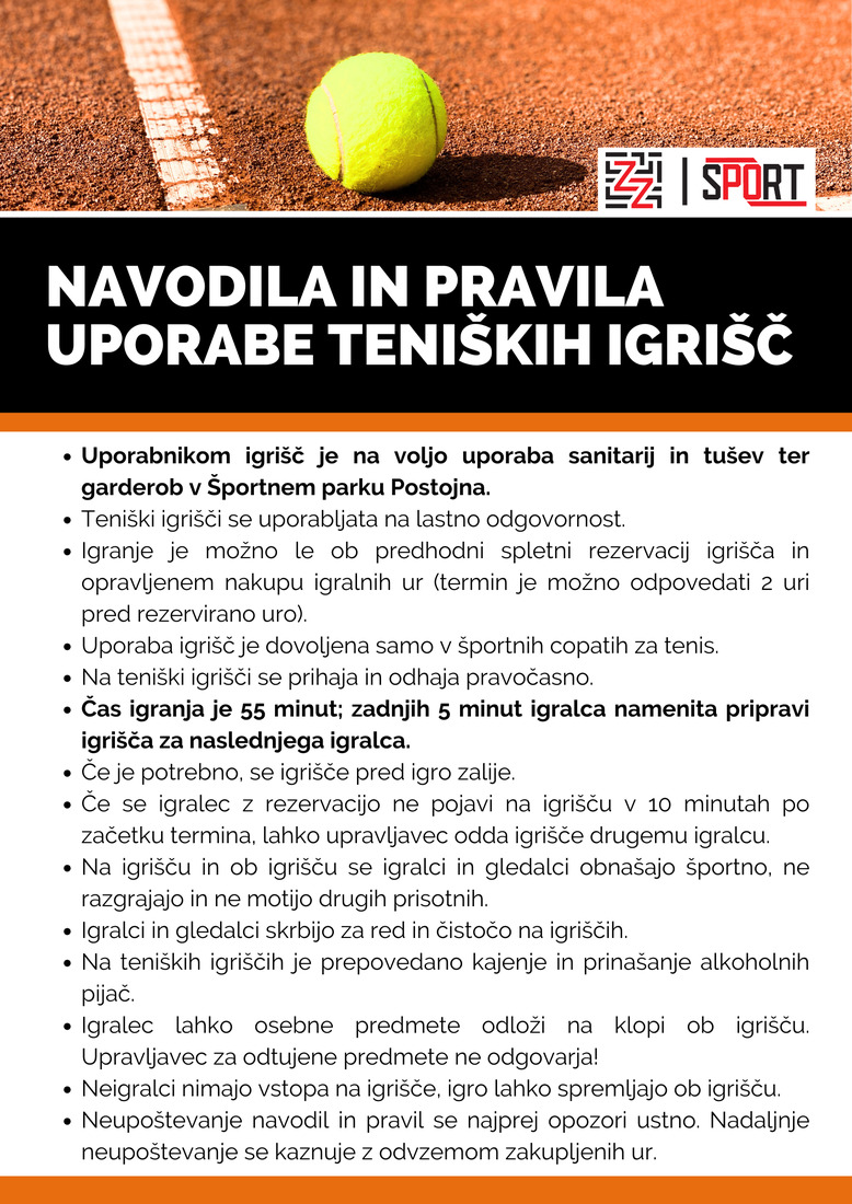 Uporabnike športnih površin obveščamo, da zakupljene ure za uporabo teniških igrišč v sezoni 2026 veljajo le v letošnji sezoni. Prenos ur v naslednje leto ne bo možen.
